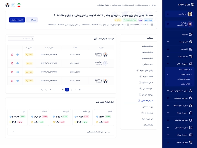 • سیستم سطوح دسترسی و نقش ها: تعریف کاربران با نقش های مختلف و کنترل سطح دسترسی به بخش های مختلف سامانه.