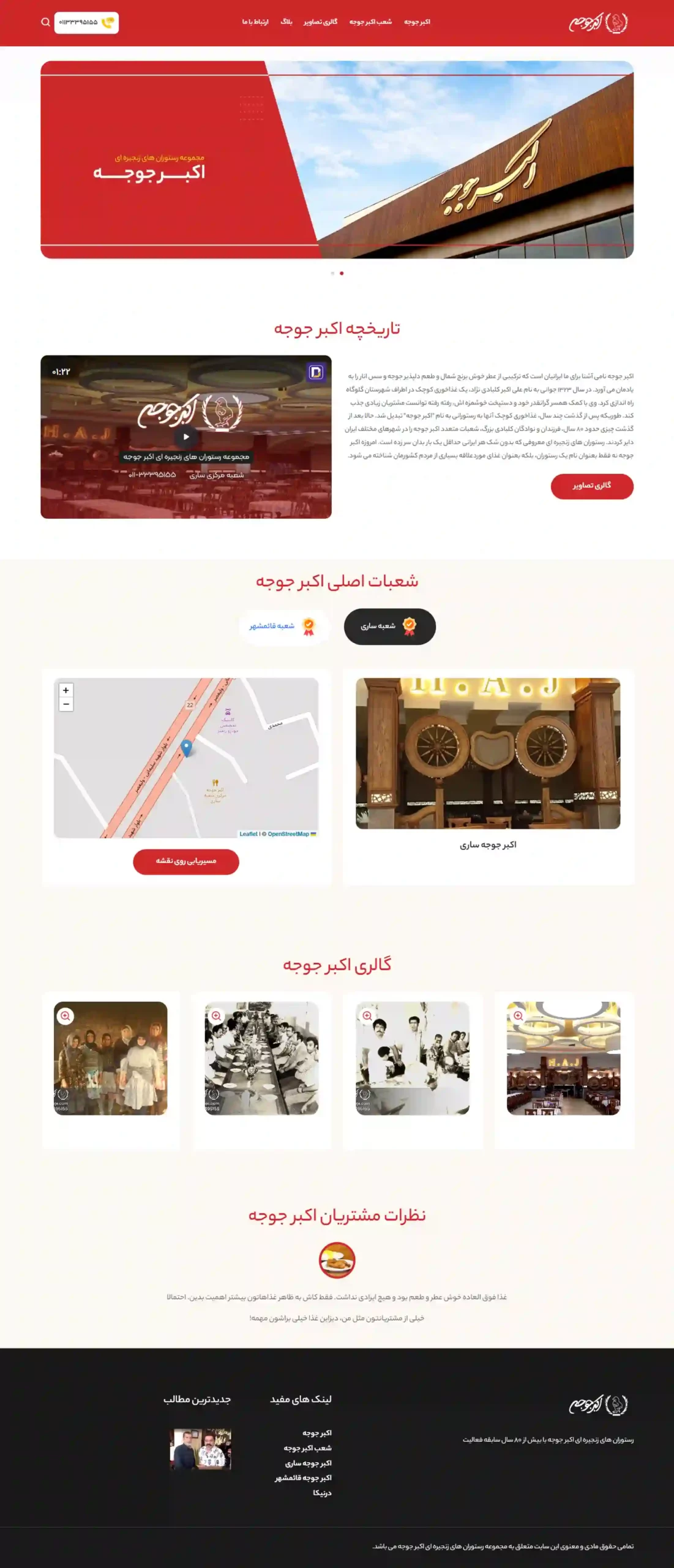 شرکت هتل و رستوران های زنجیره ای اکبرجوجه با شعبات متعدد در سطح کشور فعالیت می نماید. وبسایت این مجموعه آرشیو کاملی از اطلاعات شعبات اصلی، تاریخچه و نظرات مشتریان را در اختیار کاربران قرار می دهد.