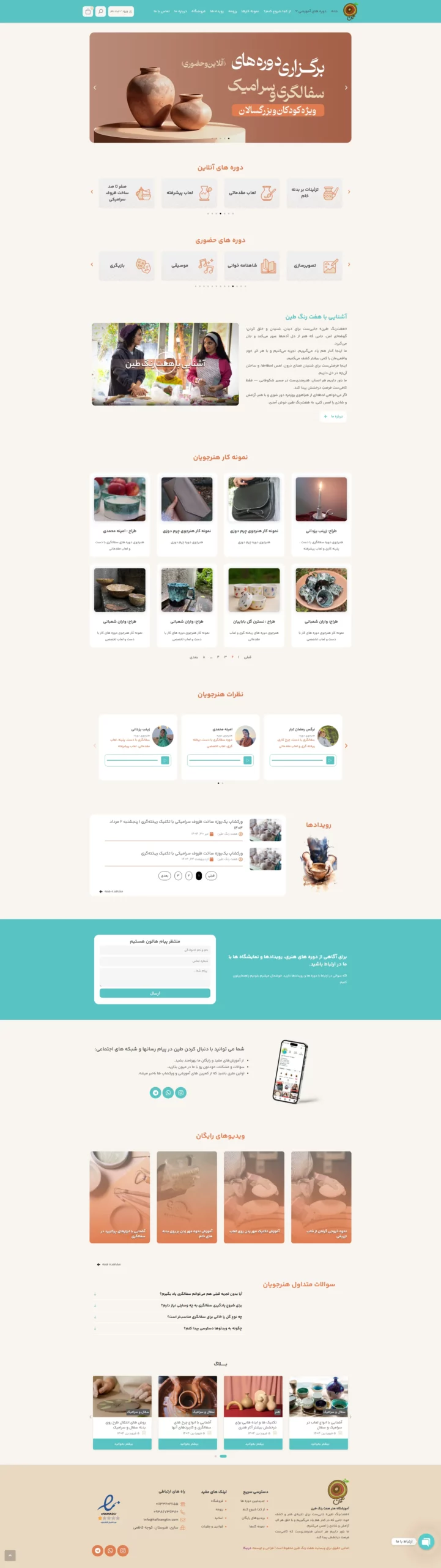 موسسه هنری هفت رنگ طین در زمینه آموزش هنر فعالیت می نماید. رشته های این موسسه طیف کاملی از هنر های تجسمی مانند سفالگری، ناشی، موسیقی، تئاتر و … را در بر می گیرد. در این وبسایت علاوه بر معرفی کلیه دوره ها، امکان برگزاری دوره های مجازی نیز وجود دارد.